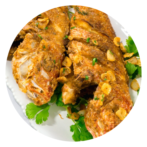 Rice, Plantain, Fries, Steamed Vegetables or Fritay.